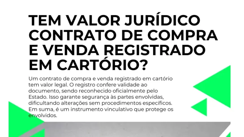 Dessa forma, um contrato de compra e venda registrado em cartório é respaldado pela lei e possui valor jurídico significativo, conferindo segurança e proteção aos direitos das partes envolvidas na transação imobiliária.